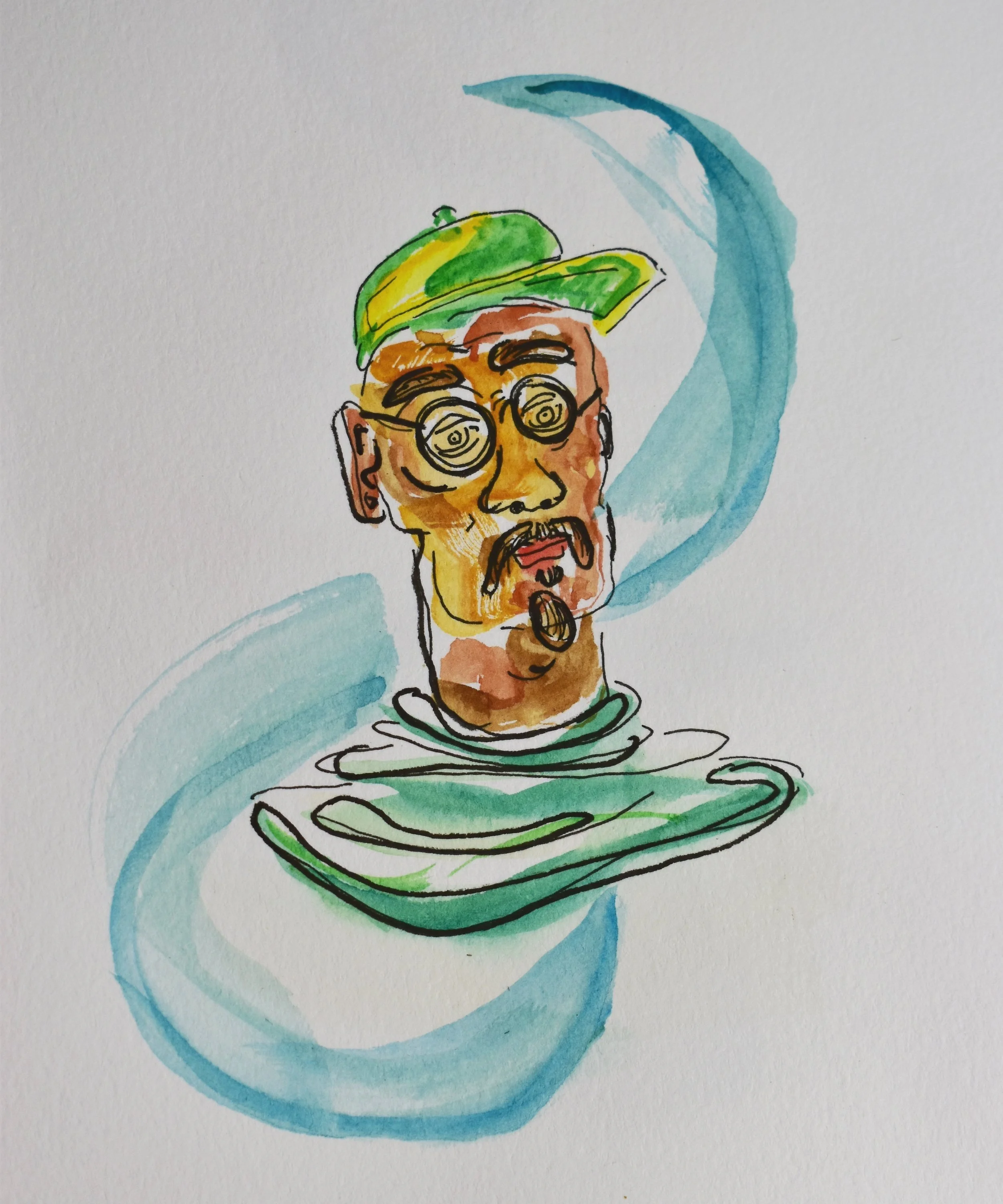Hank, Micron pens and water color on mixed media paper